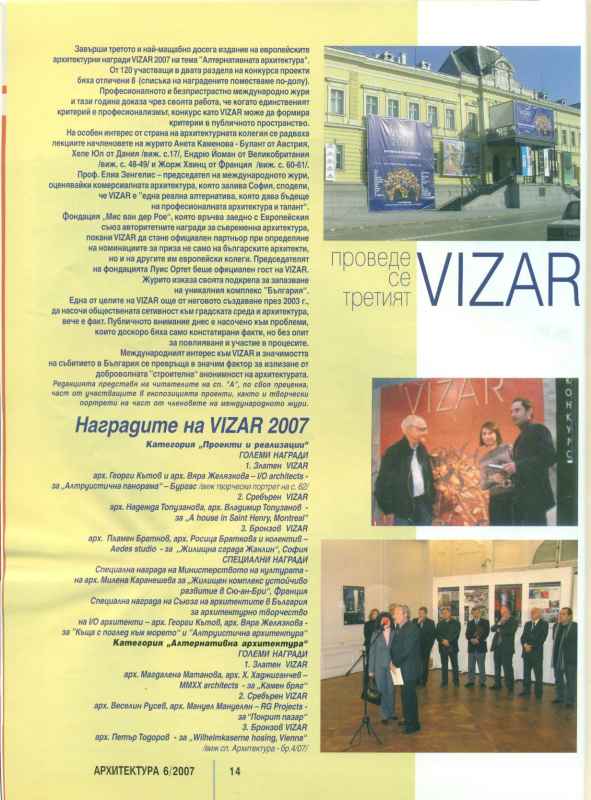 На Съюза на архитектите в България Арх. Георги Кътов и арх. Вяра Желязков – I/O architects, - „Къща с поглед към морето“ и „Алтруистичната архитектура“
